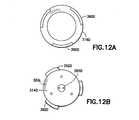 図11は、キャリアドア316Aおよびポートドア6414のそれぞれが、キャリアドアとキャリア3140、およびポートドアとポート6412またはチャンバ6400Dをそれぞれ固定する機械的「フェ−ルセーフ」固定具を有する、例示的な実施形態を図示する。キャリア314D、キャリアドア316D、ポート6412、およびポートドア6414は、受動的(連接固定パーツがない)であってもよい。本実施形態では、インデクサは、ポートドアおよびキャリアドア上の固定タブを嵌合/解放するために、ポートドアのZ軸インデクシングおよびポートドアの回転(例えばZ軸の周囲で)の両方を行うことができてもよい。別の実施形態では、ポートドアのZ軸移動および回転(回動)は、異なる駆動軸を介して提供されてもよい。図12A〜12Bは、キャリアのシェル314Dおよびキャリアドア316Dの底面図をそれぞれ示す。図13A〜13Bは、(ロードロック)チャンバ6400およびポートドア6414内のポート6412の上平面図をそれぞれ示す。例示的な実施形態では、キャリアのシェルの下面は、キャリアドア316D上の嵌合面362Dによって嵌合される嵌合タブ/表面360Dを有する。理解され得るように、嵌合面360D、362D間の嵌合/解放は、キャリア314Dに対するキャリアドアの回転(回動)によって成立してもよい。キャリアドアの回転は、以下に記載されるように、ポートドア6414によって与えられる。別の実施形態では、ドアとキャリアとの間の嵌合面は、いかなる所望の構成を有してもよい。キャリアドア316Dは、キャリアドア6414T上のトルク連結部材を補う雄/雌トルク連結機構365Dを有してもよい。示される例示的な実施形態では、ポート6412およびポートドア6414は、概してキャリアおよびキャリアドアの嵌合機能と類似するインターロッキングまたは嵌合面を有してもよい。図13A、13Bに最もよく見られるように、ポートは、嵌合面6460(例えば内側に突き出る)を有してもよく、ポートドア6414は、ポート表面6460に重なり、それと嵌合するために、補完嵌合面6462を有してもよい。理解され得るように、例示的な実施形態では、キャリア上の嵌合面3600、3620、およびポート上の嵌合面6460、6462は、互いに関連して位置し、ポートドアが回転される際に、キャリアとキャリアドアおよびポートとポートドアとの間の嵌合/解放を同時に行えるようにする。  FIG. 11 illustrates an exemplary implementation in which each of the