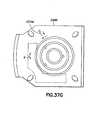 図37Gは、キャリアを配置し、キャリアの連結点を積載ポートと位置合わせするために、キャリアがプッシャーアーム2374Mによって駆動されてもよいことを除き、類似する積載ポート2300Aの別の例示的な実施形態を示す。示される例示的な実施形態では、積載面は、θXおよびθYを中心に回転可能に搭載されてもよい(矢印R、Pに示されるように)。積載平面を傾斜してキャリアの重心を移動するために、空気ベアリングと組み合わせた自由度を使用し、回転角方向への並進を付与することができる。この方法は、キャリアと積載ポートの磁石を位置合わせするために適切なキャリア方向に積載平面を理知的に動かすために、位置フィードバックを使用する。一度キャリアが位置につくと、空気ベアリングの動作が停止され、キャリアがポートドアにクランプされてもよい。最終的に、ドアの取り外しに適切なポートとの位置合わせを達成するために、積載平面が回転され、元の位置に戻される。  FIG. 37G illustrates another exemplary implementation of a