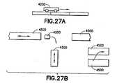 図25A〜25Bは、半導体FAB内で基板を搬送するためのリニアモータコンベヤ3500(キャリア3200内に設置されたフォーサーセグメントおよび組み込まれた反応要素を有する)を示す。示される例示的な実施形態では、コンベヤ3500は、直下からキャリアにアクセスできるように反転されてもよい(例えばキャリアは、コンベヤの下から吊り下げられ、コンベヤの下に位置する)。その他の点では、コンベヤ3500は、前述された搬送システムのセグメント500A、500A''、500A'''と類似してもよい。例示的な実施形態では、コンベヤ3500とキャリア3200との間の連結を維持するために、磁気保持フォーサー3502が採用されてもよい。この力は、特にこの目的のために提供されるリニアモータコイル(例えばリニア同期設計のもの)から、ならびに/または別個の電磁石および/もしくは永久磁石(図示せず)を介して発生してもよい。キャリアとコンベヤの連結および分断は、迅速であり、パーツ(例えば、電磁石スイッチ)を動かすことなく達成されてもよい。フェ−ルセーフの動作は、キャリアとコンベヤとの間の磁路および/または受動的な機械的保持機構を介して保証されてもよい。  FIGS. 25A-25B show a linear motor conveyor 3500 (with a forcer segment installed in a