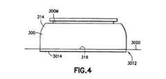 ここで、図4を参照すると、別の例示的な実施形態によるキャリア300が示されており、キャリア300は、概してキャリア200と類似するが反対であり、壁316の上面上にシェル314を有する。キャリア200と同様に、キャリア300は、上面開口型(シェルがドアとして動作する)または底面開口型(壁がドアとして動作する)のいずれかであってよい。示される例示的な実施形態では、キャリア300は、一体型搬送機構成要素300Mを有してもよい。例えば、キャリアのシェル(または壁)314、316は、ローラーまたは空気ベアリング、および駆動部またはモータによって駆動され得る反応部材等の搬送機起動支持体を有してもよく、これによってFAB内のキャリアを自己搬送可能(すなわち独立した搬送運搬車を使用することなく)にしてもよい。図4は、例示目的のために積載ポート3010(概して前述されたポート2010に類似する)に置かれたキャリア300を図示する。示される例示的な実施形態では、キャリア300は、ポート接合部分上に上面積載されてもよい。キャリアドア316は、ポートドア3014に合わせてまたは隣接して(接合部分を形成するように)置かれてもよく、シェル314は、ポート3012と接合してもよい。また、キャリア300とポートの接合部分は、図3Bに示される略X封止220'と類似する、3、4、または5方向"交差"型(または容量損失なし)封止を有してもよい。図4Aは、一実施形態による、封止320の断面図を示す。例示的な実施形態では、封止320は、底面開口型構造の4方向封止であってもよいが、その他の点では、封止220'と概して類似する。  Referring now to FIG. 4, a