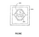 さらに別の実施例によると、キャリアは、図37Eに示される例示的な実施形態のもの等、空気ベアリング面に一体化された、方向付けられた空気ノズル2372'(図37E参照)によって駆動されてもよい。該実施形態では、空気ノズル2372は、キャリアに運動を付与する、横方向に印加される圧力を底面に提供してもよい。運動は、キャリア上の磁石が積載ポートと一直線になるまで、キャリアをXまたはY軸に向けるために、ノズルの適切なセットにエネルギーを供給するコントローラによって制御することができる。ノズルのアレイがプラテンに搭載され、回転/傾斜する別の実施形態では、プラテンは、ノズルに所望の方向を提供するためのエネルギーが供給されてもよい。ノズルは、キャリアの意図される運動方向と対向する方向に排気を向ける。この動きは、磁石のアライメントまでキャリアを並進するための横力を付与する。キャリアの実際の位置を検出し、位置合わせした位置と比較するために、例えば磁気連結具からのフィードバックを含む、センサフィードバックのいくつかの形式が使用されてもよい。この情報は、どの方向にキャリアが並進されるべきか、および空気ノズルによってどのような力がキャリアに印加されるべきかを決定してもよい。別の実施形態では、キャリアを所望の位置に位置合わせするために、ノズルおよび磁気連結具が併用して使用されてもよい。  According to yet another example, the carrier is driven by a directed