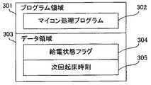 ここで、本実施形態にかかるゲーム装置1の電源制御のモードに関して説明する。本ゲーム装置では、電池等の電源が装着されて、上記各構成部品への電力供給が可能な状態となった後は、基本的には、「通常電力モード」と「省電力モード」の2つの電源制御モードのいずれかで動作する。「通常電力モード」は、上記構成部品の全てに電力を供給している状態である。例えば、ユーザが所定のゲームを実際に操作してプレイする場合や、各種アプリケーション(以下、単にアプリと呼ぶ)を実際に操作する場合の電源制御モードは「通常電力モード」である。「省電力モード」は、上記構成部品の一部に対してのみ電力の供給を継続し、それ以外の構成部品に対しての電力供給は停止している状態である。本実施形態では、この「省電力モード」の一つとして、「スリープモード」がある。「スリープモード」は、上記第1マイコン37、無線通信モジュール34にのみ電源を供給し、それ以外の部品、つまり、CPU311やLCDへの電力供給は停止している状態である(但し、CPU311は、「スリープモード」の解除指示を受けることは可能である)。また、「スリープモード」において、第1マイコン37や無線通信モジュール36(の第2マイコン361)は、「マイコン処理」、「スリープ中BG通信処理」と呼ばれる処理を所定時間毎に繰り返し実行するが、これについては詳細は後述する。  Here, the power control mode of the