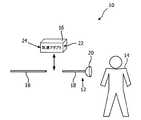 人工呼吸器回路12は回路導管18及び対象体インタフェース装具20を含む。いくつかの異なる治療シナリオで、対象体14の気道は、対象体14の気道と流体交流する人工呼吸器回路12を置くように係合される。前記対象体14の気道が係合され、対象体インタフェース装具20により、人工呼吸器回路12と流体交流するように配置される。前記対象体インタフェース装具20は、対象体14の気道の1以上のオリフィスと、密閉又は密閉されずに係合し得る。対象体インタフェース装具20の例には、例えば気管内チューブ、鼻カニューレ、気管切開チューブ、鼻マスク、経口/鼻マスク、フルフェイスマスク、トータルフェイスマスク、部分的再呼吸マスク又はその他のインタフェース装具が含まれ、これらは対象体の気道を有するガスのフローと交流する。本発明はこれらの例には限定されず、全ての対象体インタフェースの実施を含むものである。  The