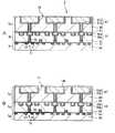 ここで、第1基板2は、半導体層2a、配線層2b、および電極層2cが、第2基板7とは反対側から順に積層されており、さらに電極層2cの表面が第2基板7に対する貼合せ面41として構成されている。一方、第2基板7は、半導体層7a、配線層7b、および電極層7cが、第1基板2の反対側から順に積層されており、さらに電極層7cの表面が第1基板2に対する貼合せ面71として構成されている。  Here, in the