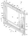 第1支持部材201は、水平方向12を長手方向とする薄い板状部材である。この第1支持部材201は、図1に示されるように、液晶表示器5の液晶画面50の手前に配置されるため、液晶画面50に表示された画像の視認性の低下を最低限に抑えるために、透明な樹脂で形成されている。EL表示器6のフレーム61には、水平方向12に貫通する挿通孔62(図9及び図10参照)が形成されており、第1支持部材201は、挿通孔62に挿通されることによってフレーム61を水平方向12へ移動可能に支持する。  Thefirst support member 201 is a thin plate-like member having thehorizontal direction 12 as a longitudinal direction. As shown in FIG. 1, thefirst support member 201 is disposed in front of theliquid crystal screen 50 of theliquid crystal display 5, so that a reduction in the visibility of an image displayed on theliquid crystal screen 50 is minimized. Therefore, it is formed of a transparent resin. An insertion hole 62 (see FIGS. 9 and 10) penetrating in thehorizontal direction 12 is formed in theframe 61 of theEL display 6, and thefirst support member 201 is inserted into theinsertion hole 62 to form the frame. 61 is supported so as to be movable in thehorizontal direction 12.