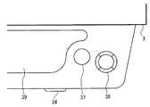 図2は、パチンコ遊技機1の一部を示す概略平面図である。図1及び図2に示されるように、枠部材3には、上記ハンドル31及びレバー32の他に、停止ボタン33、取り出しボタン34、スピーカ35、枠ランプ36、演出ボタン37、演出キー38、及び皿39が設けられている。  FIG. 2 is a schematic plan view showing a part of thepachinko gaming machine 1. As shown in FIGS. 1 and 2, theframe member 3 includes astop button 33, a take-out button 34, aspeaker 35, aframe lamp 36, aneffect button 37, aneffect key 38, in addition to thehandle 31 and thelever 32. And adish 39 are provided.