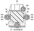 即ち、回路基板5は、複合ケーブル115から延設された撮像信号、駆動信号などを授受する電源線41のおよび信号線42の芯線41a,42aが導体ランド43に半田によって電気的に接続されており、信号線42の外部導体42cの外径部が外部導体ランド44に半田によって電気的に接続されている。  In other words, the