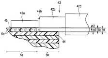 このように、信号線42が接続される回路基板5は、信号線42の芯線42aの外径部と外部導体の外径部の寸法差δtに応じて、シート5cを単数または複数組み合わせて芯線接続部5aに対して中心方向に所定の高さ寸法t1を有した外部導体接続部5bの段差を形成される。  As described above, the
