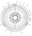 したがって、回路基板31は、中央部の周囲を囲むように板状に形成されていて、その表面側に回路部品32が実装されている。具体的には、回路基板31には、発光素子22を点灯制御するうえで必要な回路部品32が切欠き部31aの周囲に実装されており、例えば、制御用IC、抵抗素子、トランス、スイッチングトランジスタ、定電圧ダイオード、全波整流器、コンデンサ等が実装されている。  Therefore, the