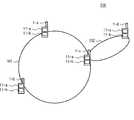 この場合には、判定部12は、自無線通信装置1‐dと無線通信装置1‐eとがUHF帯による無線通信が可能であると判定する。さらに、他の無線通信装置1‐a〜1‐c、1‐e〜1‐fにおいても、自無線通信装置1‐dの無線通信部11‐aの設定をUHF帯に切り替えて無線通信不能となるものはないと判定する。つまり、無線通信設定を切り替えても、各無線通信装置は必ず他のどれかの無線通信装置と無線通信が可能であり、他の無線通信装置と無線通信ができなくなる(孤立する)無線通信装置は存在しないと、判定部12は判定する(ステップS103のNo)。  In this case, the