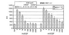 また、眼体液中のVEGFの濃度レベルは、糖尿病患者及び他の虚血関連の網膜症患者における血管の活性な増殖の存在と非常に相関する。Aiello等, N. Engl. J. Med. 331: 1480-1487 (1994)。さらに、研究から、AMDに影響を受ける患者の脈絡叢新生血管膜中のVEGFの局在化が示された。Lopez等, Invest. Ophthalmol. Vis. Sci. 37: 855-868 (1996)。 Also, the concentration level of VEGF in ocular fluid is highly correlated with the presence of active proliferation of blood vessels in diabetic patients and other ischemia-related retinopathy patients. Aiello et al., N. Engl. J. Med. 331: 1480-1487 (1994). In addition, studies have shown localization of VEGF in the choroid plexus neovascular membrane of patients affected by AMD. Lopez et al., Invest. Ophthalmol. Vis. Sci. 37: 855-868 (1996).