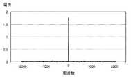 図7は、シミュレーションした相関分析の結果を示す図である。横軸は周波数(単位:入力信号dのシンボル長の逆数)であり、縦軸は相関の有無を示す電力である。周波数は、電力がピーク値となるときの周波数の値が0となるよう補正した値である。図7の例では、正のピークが現れている。電力が所定の値より大きくなるピークの有無に基づき、ベースバンド信号の同期位置を検出することができる。受信部33は、該ベースバンド信号の同期位置に基づき、受信信号からベースバンド信号を生成する。  FIG. 7 is a diagram showing the result of the simulated correlation analysis. The horizontal axis is frequency (unit: reciprocal of symbol length of input signal d), and the vertical axis is power indicating the presence or absence of correlation. The frequency is a value corrected so that the frequency value when the power reaches the peak value becomes zero. In the example of FIG. 7, a positive peak appears. The synchronization position of the baseband signal can be detected based on the presence or absence of a peak at which the power is greater than a predetermined value. The receiving