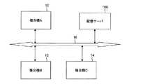 なお、図では複合機10,12,14がそれぞれネットワーク16を介して配信サーバ100に接続されているが、複合機10のみが配信サーバ100に接続され、複合機12,14はネットワーク16とは別のネットワーク、例えばLANにより複合機10に接続される構成であってもよい。  In the figure, the