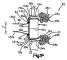 図1A〜1Fに例示される実施形態に従い、第1作動ストランド38a及び第2作動ストランド38bは、対応する第1固定部本体28a及び第2固定部本体28bと一体である。他の実施形態により、第1作動ストランド38a及び38bは、対応する第1固定部本体28a及び第2固定部本体28bから分離し、これに取り付けられるものとして例示される(図2C参照)。更に他の実施形態により、第1作動ストランド38a及び第2作動ストランド38bの一方が、対応する固定部本体と一体であり、第1作動ストランド38a及び第2作動ストランド38bの他方が、対応する固定部本体から分離し、これに取り付けられている。第1作動ストランド38a及び第2作動ストランド38bが例示され、対応する第1固定部本体28a及び第2固定部本体28bと一体であるものとして記載される実施形態により、第1作動ストランド38a及び第2作動ストランド38bは代替的に、他に記載がない限り、対応する第1固定部本体28a及び第2固定部本体28bから分離され、これに取り付けられる得ることが理解されるべきである。更に、第1作動ストランド38a及び第2作動ストランド38bが例示され、対応する第1固定部本体28a及び第2固定部本体28bと分離されて取り付けられるものとして記載される実施形態により、第1作動ストランド38a及び第2作動ストランド38bは代替的に、他に記載がない限り、対応する第1固定部本体28a及び第2固定部本体28bと一体であり得ることが理解されるべきである。  In accordance with the embodiment illustrated in FIGS. 1A-1F, thefirst working strand 38a and thesecond working strand 38b are integral with the corresponding firstfixed body 28a and secondfixed body 28b. According to another embodiment, the first workingstrands 38a and 38b are illustrated as being separated from and attached to the corresponding firstfixed body 28a and secondfixed body 28b (see FIG. 2C). According to still another embodiment, one of thefirst working strand 38a and thesecond working strand 38b is integral with the corresponding fixing body, and the other of thefirst working strand 38a and thesecond working strand 38b is the corresponding fixing. It is separated from the main body and attached to it. Thefirst working strand 38a and thesecond working strand 38b are illustrated, and thefirst working strand 38a and thesecond working strand 38a and thesecond working strand 38b are described according to embodiments described as being integral with the corresponding first andsecond fixing body 28a and 28b. It should be understood that the two actuatingstrands 38b may alternatively be separated from and attached to the corresponding first and secondfixed body 28a, 28b unless otherwise stated. Further, thefirst actuating strand 38a and thesecond actuating strand 38b are illustrated by the embodiment described as being mounted separately from the corresponding first fixingpart body 28a and second fixingpart body 28b. It should be understood that thestrand 38a and thesecond working strand 38b can alternatively be integral with the corresponding first andsecond fixation body 28a, 28b, unless otherwise noted.