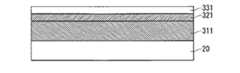 まず、図31に示す工程において、ガラスやPET等で構成される透明基板20上に、スパッタリング法によりAlNiNdターゲットを用いて、AlNiNd膜311を300nmの厚さに成膜する。引き続き、同一の成膜装置を用いて、N2ガスを含んだ雰囲気中で、AlNiNd膜311の上に、スパッタリング法によりAlNiNdターゲットを用いて窒化度が高い窒化Al合金膜321を50nmの厚さに成膜する。窒化Al合金膜321の窒化度は、実施の形態1と同様の条件より選択すれば良い。First, in the step shown in FIG. 31, an
