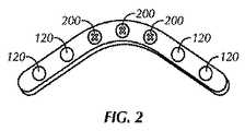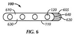 別の実施形態では、本体は、第1の材料によって実質的に囲まれる複数の開口を有するプレートと、第2の材料を実質的に含む延長部分とを含む。 In another embodiment, the body includes a plate having a plurality of apertures substantially surrounded by a first material and an extension that substantially includes the second material.