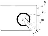 CPU21は、指FINで触れられた位置に、図3に示すような円形のインジケータM1を表示する(S3)。インジケータM1は、タッチされた画面上の座標位置を中心に所定の半径を有する円状の図形である。