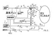 蒸気注入許容閾値が満たされた後で、パージシステム16(制御装置18を介する)は図5に示される第2の形態の運転に移行し、ここでは、空気の代わりに蒸気でガス燃料システムからのガス燃料36をパージする。蒸気注入許容閾値は温度と圧力の関数である。温度に対する蒸気注入許容閾値は約250℃から425℃または315℃から375℃の範囲であってもよく、圧力は約3500kPaから5500kPaまたは4170kPaから4500kPaの範囲であってもよい。例えば、パージシステム16は、約315℃、320℃、325℃、330℃、335℃、340℃、345℃、350℃、355℃、360℃、365℃、370℃もしくは370℃以上の温度または任意の別の温度、および/あるいは、約4170kPa、4200kPa、4250kPa、4300kPa、4350kPa、4400kPa、4450kPaもしくは4500kPa以上の圧力または任意の別の圧力で、第2の形態の運転に移行してもよい。  After the vapor injection tolerance threshold is met, the purge system 16 (via the controller 18) transitions to the second form of operation shown in FIG. 5, where the vapor is replaced by gas instead of air from the gas fuel system. The
