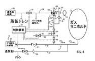 空気パージ回路76に沿ってオフィリス82を横断する蒸気の一部は矢印134、136で示されるように共通のパージ回路に向かう。蒸気は開いているバルブ84、86を通って共通のパージ回路78に沿って継続して流れ、矢印138で示されるガス燃料ライン40への圧力降下が最小となる。蒸気でガス燃料36をパージする間、抽気バルブ90は閉じられている。したがって、液体燃料によるガスタービン14の運転中、蒸気は矢印140で示されるようにガス燃料ライン40に沿って流れてガス燃料システムのガス燃料回路(例えば、ガス燃料ライン40、燃料ノズル20および22、ならびに、ガスマニホルド92)をパージする。蒸気でガス燃料回路をパージする間、蒸気によりガスライン40内で形成されるすべての凝結水を回収して排水するために、排水バルブ100は開かれている。蒸気は矢印142、144で示されるように排水ライン96に沿って流れる。排水ライン96に沿って配置されるオリフィス98は、バルブ100および通気領域に向かって流れる蒸気を制限する。蒸気流れを制限することにより、オフィリス98は蒸気の大部分がガスマニホルド92に向かって確実に流れるようにする。図2および3の設計では、パージシステム16は、ガス燃料システムのガス燃料回路を空気および蒸気により二重パージすることを可能にし、同時に、多重燃料ガスタービンエンジン14のパワー出力を増大させるために蒸気を使用することを可能にする。さらに、パージシステム16は、概して、コーキング、ガス燃料ライン40および燃料ノズル20、22への燃焼生成物の逆流、ならびに、エンジンハードウェアの迅速な劣化を軽減するかまたは排除する。  A portion of the vapor that traverses the