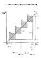 各ブロックの発生情報量が均一の場合、f(t)は、符号35〜38で示される四角形領域の左下頂点と右上頂点とを結ぶ直線(グラフ30と一致)となる。先頭ブロックでグループ全体のビット量が発生する場合には、f(t)は各四角形の左端線及び上端線をつないだ線となる。後者はバッファ遅延の観点で最悪の場合となる。  When the amount of information generated in each block is uniform, f (t) is a straight line (matching the graph 30) connecting the lower left vertex and the upper right vertex of the rectangular area indicated by