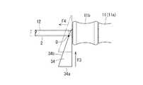 かかる筒体移動部材34の下端面34aを力点とし、シャフト12と直交する方向の力F3を加えて、筒体移動部材34を筒体2の後端とシャフトロック部材11bの先端面との間に挟挿すると、筒体移動部材34の斜面34bと筒体2の後端との当接部Qにおいて、上記力F3が筒体2をシャフト12の先端方向に移動させる力F4に変換されて筒体2に作用するため、筒体2を回転させないでシャフト12の先端方向に移動させることができる。  Using the