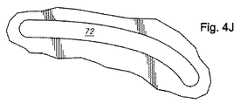 図3A〜図3Hは、本発明の特定の実施形態に係るスロット付き先端20についての様々なスロット設計を示す(それぞれ「20A」、「20B」等として符号が付けられ、集合的に「スロット付き先端20」と称される)。図3Aでは、スロット付き先端20Aの半径よりも深いスロットがスロット付き先端20Aの側部に切り込まれ、スロット付き先端20Aはスロット付き先端20Aの側部に向かって曲げられる。浅いスロットが反対側にも切り込まれ、その側部も同様に曲がるようになる。図3B及び図3Cは真っ直ぐな「鍵穴」スロット及び曲げられた「鍵穴」スロットを示し、真っ直ぐな「鍵穴」スロット及び曲げられた「鍵穴」スロットは、スロットがそれぞれのスロット付き先端20B及び20C内により深く延在するにつれて、より広い基部を有する。より広い基部は、スロット付き先端20B又は20Cをその湾曲位置に逸らすのに必要とされる力の量を減少させ、エンドプローブ10をより快適に使用することを可能とする。  3A-3H illustrate various slot designs for slotted