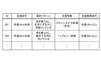 図2に示すID番号002の支援条件データは、車輌の状態が“時速20km未満”(支援条件)であり、このときに運転支援すべき運転者の動きパターンが“身を乗り出し、顔が下方向を向いている”という動作である。