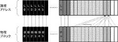 この状態でシステムに組み込んで動作させた場合に、OS等が特定領域に書き換え処理を集中して行うと、ウェアレベリングによる平準化が機能しないために、その特定領域に割り当てられた物理ブロックの寿命が著しく疲弊するという問題がある。 In this state, when the OS is incorporated into the system and operated, if the rewriting process is concentrated on a specific area, leveling by wear leveling does not function, so the life of the physical block allocated to the specific area There is a problem that is extremely exhausted.