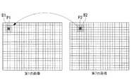 また、図8に示す例では、第1の画像G1内の全ての画素P1について対応画素P2を探索するのではなく、複数に区画したブロックB1毎に代表画素P1の対応画素P2を探索し、探索された対応画素P2を含むブロックB2単位で置換することとしている。このようにすることで、対応点探索に要する時間をさらに短縮することができるとともに、置換したブロックB2どうしが重なり合わずに済むという利点がある。 Further, in the example shown in FIG. 8, the corresponding pixel P2 is not searched for all the pixels P1 in the first image G1, but the corresponding pixel P2 of the representative pixel P1 is searched for each block B1 divided into a plurality of blocks. Replacement is performed in units of block B2 including the searched corresponding pixel P2. By doing so, there are advantages that the time required for the corresponding point search can be further shortened and the replaced blocks B2 do not overlap each other.