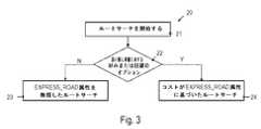 ルートサーチを行うことは、好みまたは回避のオプションが起動された場合、第一の属性が割り当てられるリンクを識別することと、リンクに対するコストモデルにおけるコストを選択的に増やす、または減らすこととを含み得る。 Performing a route search includes identifying a link to which the first attribute is assigned and selectively increasing or decreasing the cost in the cost model for the link when a preference or avoidance option is invoked. obtain.