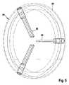 (g)ステントとの係合のために構成された移動部の部分または表面(例えば、もし用いられた場合には、上記の各枝部)は、チャネル軸および/または(もし用いられた場合には)リングの面に関して略径方向に延在してもよい。代替的に、ステントとの係合のために構成された移動部の部分または表面は、径方向および/またはリング面に関して傾けられてもよい。1つの形式においては、該部分は、チャネルの出口および/またはより狭い(例えば、内部においてより狭い)端部に向かう方向に傾けられる。(例えば出口/狭い端部に向かう)傾斜の角度は、約5度(以上)、約10度(以上)、約15度(以上)、または約20度(以上)であってもよい。傾斜の角度は、上記の値のうちの任意の2つの間、例えば約5度と約15度との間であってもよい。傾斜は、軸方向圧縮荷重の下でのステントの座屈の危険性を低減し得る。傾斜は、径方向に内方向の代わりに、径方向に外方向にステントを適度に移動させる傾向があってもよい。適度な径方向に外方向の移動はチャネルの内部表面との接触によって迎えられ、それによって、ステントの形状が座屈を回避するように制御されることを可能にする。 (G) the portion or surface of the moving portion configured for engagement with the stent (eg, if used, each branch described above) is the channel axis and / or (if used) May extend substantially radially with respect to the face of the ring. Alternatively, the portion or surface of the moving portion configured for engagement with the stent may be tilted with respect to the radial direction and / or the ring surface. In one form, the portion is tilted in a direction toward the outlet of the channel and / or a narrower (eg, narrower inside) end. The angle of inclination (eg, towards the exit / narrow end) may be about 5 degrees (or more), about 10 degrees (or more), about 15 degrees (or more), or about 20 degrees (or more). The angle of inclination may be between any two of the above values, for example between about 5 degrees and about 15 degrees. Inclination can reduce the risk of buckling of the stent under axial compression loading. The tilt may tend to move the stent moderately outward in the radial direction instead of inward in the radial direction. Moderate radial outward movement is greeted by contact with the inner surface of the channel, thereby allowing the stent shape to be controlled to avoid buckling.