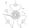 ここで、スウェージング冶具13の往復運動は、次のように行われる。先ず、第1の対のダイス13aがマンドレル10に巻き付いた不織布2に打ち付けられる。その状態で、即ち、第1の対のダイス13aが不織布2のロールを保持した状態で、第2の対のダイス13bが、不織布2の層から離れた後に、マンドレル10に巻きついた不織布2に打ち付けられる。次に、第2の対のダイス13bが不織布2のロールを保持した状態で、第1の対のダイス13aが、不織布2の層から離れる。このようにして、往復運動が繰り返される。  Here, the reciprocating motion of the