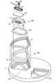 筐体90の下面は、当該筐体90の下方領域への窒素ガスやオゾンガスなどの侵入を阻止するために、図1及び図6に示すように、外縁部が周方向に亘って下方側(回転テーブル2側)に向かって垂直に伸び出して、ガス規制用の突起部92をなしている。そして、この突起部92の内周面、筐体90の下面及び回転テーブル2の上面により囲まれた領域には、既述のプラズマ発生用ガスノズル34が収納されている。  As shown in FIGS. 1 and 6, the lower surface of the
