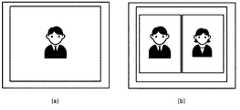 同様に、面接官のユーザ端末装置2bにおいては、ディスプレイに被面接者の画像が表示され、スピーカから被面接者の音声が出力される。なお、ユーザ端末装置2bでは、図7(a)に示すように、被面接者のみが表示されるビューや、図7(b)に示すように、面接官自身と被面接者が並んで表示されるビューなどを選択することができる。  Similarly, in the