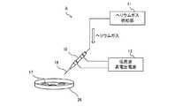 そして、管体13内部にヘリウムガスを通気させるとともに、第1及び第2電極14,15間に低周波高電圧を印加することにより、開口16の先端からプラズマジェット18が噴出されるよう構成している。  Then, helium gas is passed through the