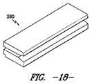 [0069]図4並びに図18及び19に示されているように、態様によってはランドゾーン(land zone)280は、ロービング142の走行方向282の含浸ゾーン250下流に配置することができる。ロービング142はランドゾーン280の中を通って横に移動してから、ダイ150を出ることができる。図18に示されているように、態様によっては、ランドゾーン280の面積が増加するように、ランドゾーン280の少なくとも一部は走行方向282に増加する断面プロフィールをもつことができる。増加する部分は、ロービング142がダイ150を出やすくするために、ランドゾーン280の下流部分でありえる。あるいは、断面プロフィールまたはその任意の部分は縮小することができるか、図19に示されているように一定であることができる。  [0069] As shown in FIG. 4 and FIGS. 18 and 19, in some embodiments, a