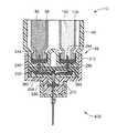 さらに、ロックアウト・バネは、凹部を画成するタブを備えるバネ先端部を備える。バネ先端部は、第1の位置から第2の位置に移動すると、内部ボディの保持リブにわたってカチッと留めるように構成され、保持リブは、ロックアウト・バネを第2の位置で保持するように構成される。 In addition, the lockout spring includes a spring tip with a tab defining a recess. The spring tip is configured to snap over the retaining ribs of the inner body when moved from the first position to the second position, the retaining ribs retaining the lockout spring in the second position. Composed.