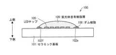 なお、ダム樹脂108の断面形状は、これに限らない。また、蛍光体含有樹脂層109の形成領域を最小限にするために、ダム樹脂108は、電極配線パターン102の一部、および、ワイヤ106の一部も覆うように形成されることが望ましい。  The cross-sectional shape of the