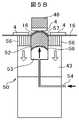図5A〜図5Cの実施例の突き上げユニット50は、従来のダイシングテープ16を介してダイ4を突き上げる突き上げ部材(例えば、図4A〜図4Dのニードル41−1〜41−3)が固体であるのに対して、液体等の流体を用いる。即ち、図5A〜図5Cの実施例のダイピックアップ装置における突き上げユニット50では、ダイシングテープ16に接触し、ダイ4を剥離する突き上げ部材(突き上げ部52)は、流体を封じ込めた弾性体である。突き上げ部52は、ダイシングテープ16側とパイプ54側のそれぞれにダイアフラム57と58を配置して、2つのダイアフラム57と58の間に流体を封じ込めてある。また、シリンダ53には、気体が封じ込められている。シリンダ部全体は、下面のダイアフラム58を介して、流体の部屋である上部の突き上げ部52と、気体の部屋である下部のシリンダ53に隔離されている。