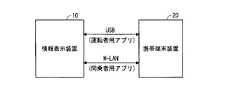 近年の携帯端末装置の多機能化により、複数の表示部(スプリットビュー表示装置で構成された表示部も含む)を有する携帯端末装置が実用化されている。そのため、複数の表示部を有する携帯端末装置と1以上の表示器を有する情報表示装置との連携動作を適切に行う技術の開発が今後の課題となると考えられる。 2. Description of the Related Art With the recent increase in functionality of mobile terminal devices, mobile terminal devices having a plurality of display units (including a display unit including a split view display device) have been put into practical use. For this reason, it is considered that development of a technique for appropriately performing a cooperative operation between a mobile terminal device having a plurality of display units and an information display device having one or more displays will be a future problem.