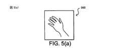 記述されるように、少なくともいくつかの実施形態において、起動ジェスチャーは、ユーザによって行われる「手を振る」動きを含むことができる。多くの場合において、そのようなジェスチャーを認識する機能は、高解像度の画像取り込みを要求しないことが多い。例えば、図5(a)に例示された画像500を考える。手の高品質画像の分析は、正確なジェスチャーの決定をもたらすことができる一方、そのような画像の分析は、本明細書における他の場所に記述されるように、かなりプロセッサおよび電力集約的であり得る。しかしながら、図5(b)の画像520に見られ得るように、非常に低い解像度の画像でさえも、妥当なレベルの信頼性を伴ってジェスチャー入力を決定するために使用され得る。図5(b)において、デバイスは、手が男性の手または女性の手であるかどうかを認識することができない可能性があり得るが、図5(c)の画像540に例示されるように、手を振るまたは他のそのような動きに起因して位置の変化が、十分な精密さをもって迅速に識別され得るように、画像において手の基本形状および位置を識別することができる。この低い解像度においてでさえも、デバイスは、ユーザが、個人の指を動かしていたかまたは別のそのような行動を行っていたかどうかを伝えることができるであろう可能性が高い。更に、特定のパスまたはパターンに続くことが検出される任意のレベルの動きが、様々な実施形態において可能性のあるジェスチャーとして識別され得る。一実施形態において、多くのレベルを用いて、約1から3までの画素を有する光センサが、LED制御と共に使用され得る。手が十分なサイズおよび/または幅のものであり、照明が十分であり、手が特定の速度範囲内で動く限り、手の動きは、適切なアルゴリズムを使用して検出され得る。検出は、測定信号におけるスパイクまたは他のそのような兆候を含み得る。  As described, in at least some embodiments, the activation gesture can include a “waving” movement performed by the user. In many cases, the ability to recognize such gestures often does not require high resolution image capture. For example, consider the