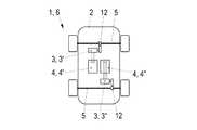 同様に、上述したトラクションモード6の実施形態は、車両2のフロントアクスル又はリアアクスルのみが駆動される構成においても使用することができる。かかる構成が図1aの右側の図に示される。第1の構成と同じく、第1のエネルギー貯蔵セル4’が2つの第1の電気モータ3’に供給し、しかしながらここで第1の電気モータ3’は車両の左側にある同じアクスル5を駆動する。第2のエネルギー貯蔵セル4”は2つの第2の電気モータ3”に供給し、対応して第2の電気モータ3”は車両の右側にある同じアクスル5を駆動する。  Similarly, the embodiment of the traction mode 6 described above can also be used in a configuration in which only the front axle or the rear axle of the