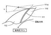 すなわち、図9Bに示すように、それぞれの複数の動翼111は、インペラ110が回転する方向において、内周側端部111aが外周側端部111bよりも前方に位置する。  That is, as shown in FIG. 9B, in each of the plurality of moving