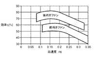 FIG. 7 is a graph showing efficiency characteristics regarding the impeller used in the temperature conditioning unit according to