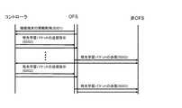 そして、上記の処理は、所定の時間間隔で継続される。なお、図6の例では、ステップS002、S003のみを繰り返すこととしているが、端末30A〜30Dが移動し、異なるOFSに接続するような通信システムでは、ステップS001から繰り返すこととしてもよい。また、コントローラ20が、宛先学習パケットの送信指示の際に、OFSに対し、送信周期等を指示して、OFS101、102がその周期に従って、ステップS003の処理だけを繰り返すようにしてもよい。  The above processing is continued at predetermined time intervals. In the example of FIG. 6, only steps S002 and S003 are repeated. However, in a communication system in which the
