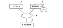 以下、本発明の実施の形態となる手術支援装置が導入された画像診断支援システムについて説明する。図1は、この画像診断支援システムの概要を示すハードウェア構成図である。図に示すように、このシステムでは、モダリティ1と、画像保管サーバ2と、手術支援装置3とが、ネットワーク9を経由して通信可能な状態で接続されている。  Hereinafter, an image diagnosis support system in which a surgery support apparatus according to an embodiment of the present invention is introduced will be described. FIG. 1 is a hardware configuration diagram showing an outline of the diagnostic imaging support system. As shown in the figure, in this system, the