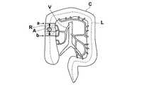 また、上記の方法に限らず、たとえば図4に示すように、入力部31による、大腸領域C上の任意の2つの位置のユーザによる指定を受け付け、その指定された2つの位置をそれぞれを通る管状臓器領域の横断面a、bを求め、それらの断面に挟まれた大腸領域Cの部分を関心領域Rとして設定するようにしてもよい。  In addition to the above method, for example, as shown in FIG. 4, designation by the user of any two positions on the large intestine region C by the