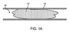 図1A乃至1Fは、塞栓除去ケージ10を使用して血管14から塞栓12を除去する様々な方法を示している。図1Aにおいて、塞栓12は、血管14の管腔16を塞いで、血管14を通る血液の流れを妨げている。塞栓12は、純粋に塞栓性のもの、すなわち血管14内または分岐点(図示省略)で引っ掛かるまで、順次小さくなる血管内に運ばれる塞栓(例えば、血栓の断片など)であってもよい。塞栓12は、純粋に血栓性のもの、すなわち血管14を塞ぐまで血管壁に形成される血栓であってもよい。代替的には、塞栓12は、塞栓的に引き起こされる血栓性の塊、すなわち塞栓から生じるせん断外乱により不完全に閉塞している塞栓に隣接して形成される血栓であってもよい。  FIGS. 1A-1F illustrate various methods of removing an