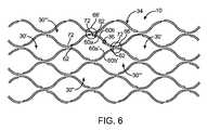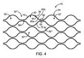 ペアを成す細長部材のストラット構造は、フレキシビリティを最大化しながらも、任意の力、例えば半径方向力を、より広い領域に亘って分配する。また、ペアを成す細長部材のストラット構造は、セル30間で非共有の細長部材60をもたらす。図4は一つの特定の細長部材の分割および結合パターンを示しているが、その他のパターンも可能である。  The pair of elongated member strut structures distribute any force, eg, radial force, over a larger area while maximizing flexibility. The pair of elongated member strut structures also provide a non-shared elongated member 60 between