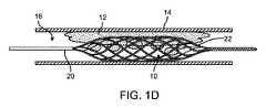 上で示唆したように、図1Dおよび1Fに記載のステップは、血管14から塞栓12を除去するために、別々に、または互いに連動して使用することができる。この除去方法の限定因子は、塞栓12と係合する塞栓除去ケージ10の能力である。塞栓12と係合する塞栓除去ケージ12の能力は、当該塞栓除去ケージが配置される血管14の壁に損傷を与えることなく塞栓除去ケージ12が塞栓12に加えることができる半径方向力とともに増加する。この因子は、塞栓除去ケージ10の構造によって影響を受ける。  As suggested above, the steps described in FIGS. 1D and 1F can be used separately or in conjunction with each other to remove